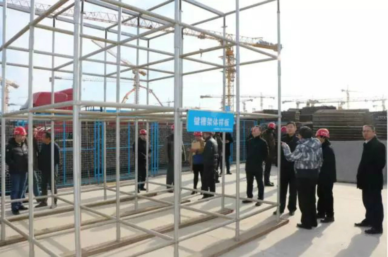 張志威總工向與會代表介紹了北京新機(jī)場項目總體情況,中建八局負(fù)責(zé)建設(shè)面積為50萬平米,將全部采用鍵槽腳手架。中建八局自2013年起使用鍵槽腳手架,三年來累計使用鍵槽架的工程項目超過150萬平米。該產(chǎn)品具有安全、施工便捷等優(yōu)點,深受中建八局各項目部喜愛。