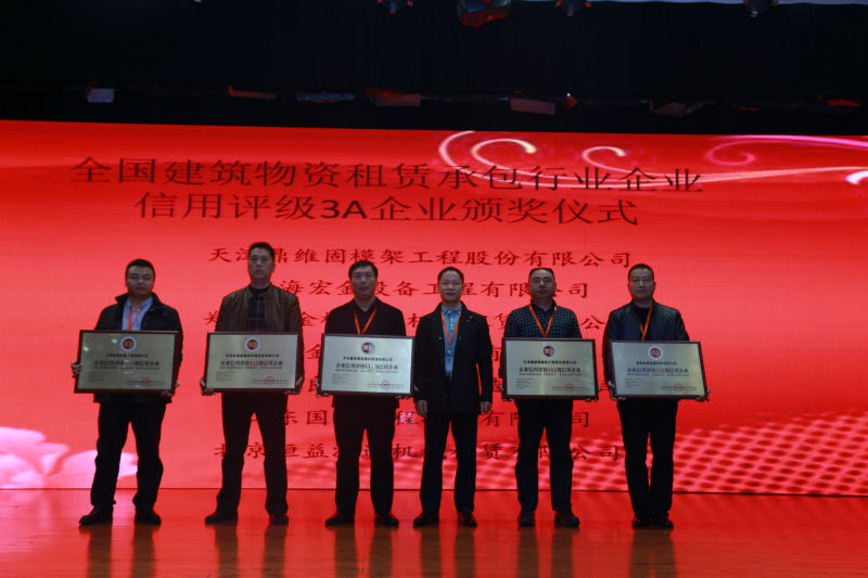 之后,協(xié)會宣布了通過評定的全國建筑物資租賃承包行業(yè)第一批信用評級3A企業(yè),我公司——北京恒益源通機械租賃有限公司——也榮登此榜單,獲得又一新的榮譽,協(xié)會領導為3A級企業(yè)頒發(fā)了獎牌與榮譽證書。